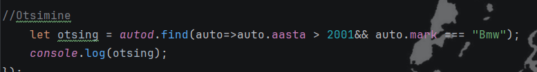 let otsing = autod.find(auto=>auto.aasta > 2001&& auto.mark === "Bmw");