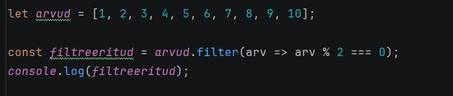 const filtreeritud = arvud.filter(arv => arv % 2 === 0);