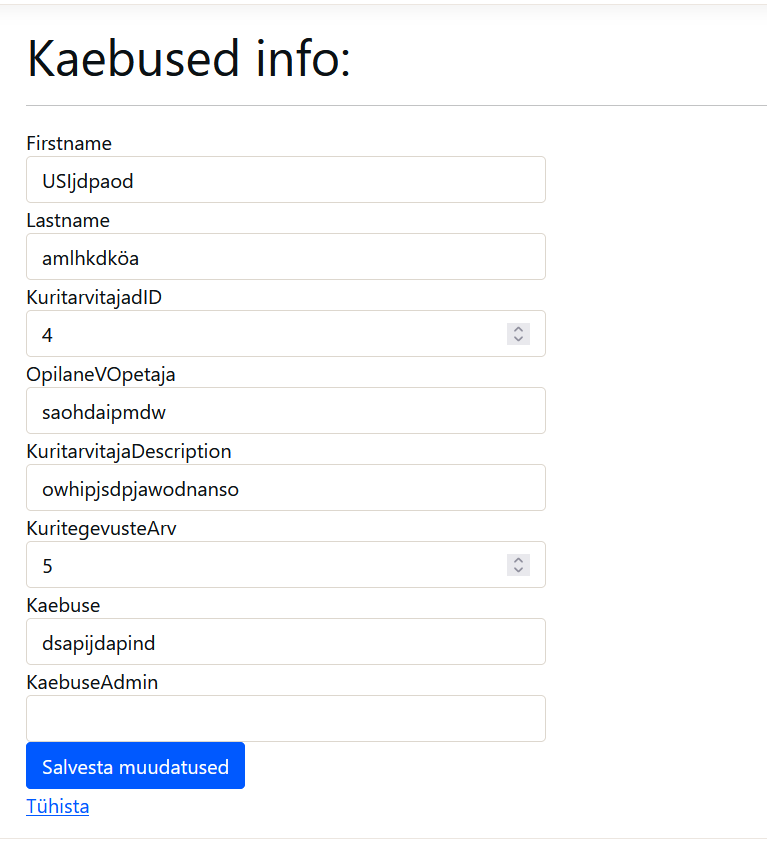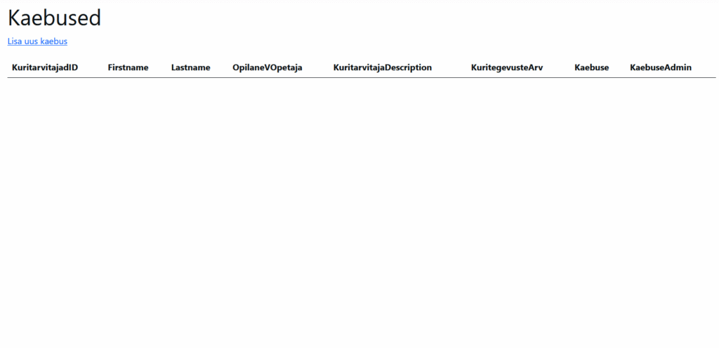 Minu koodi eesmärk on luua “koolile” veebi leht kus on erinevad atribudid nagu Kaebused(Mille olen Ise loonud), Õpilased(Mille olen Õpetaja abiga loonud), Osakonnad, Õpetajad jne. Siin all pool on paar näidet minu koodist ja ka mis nende ees märk on