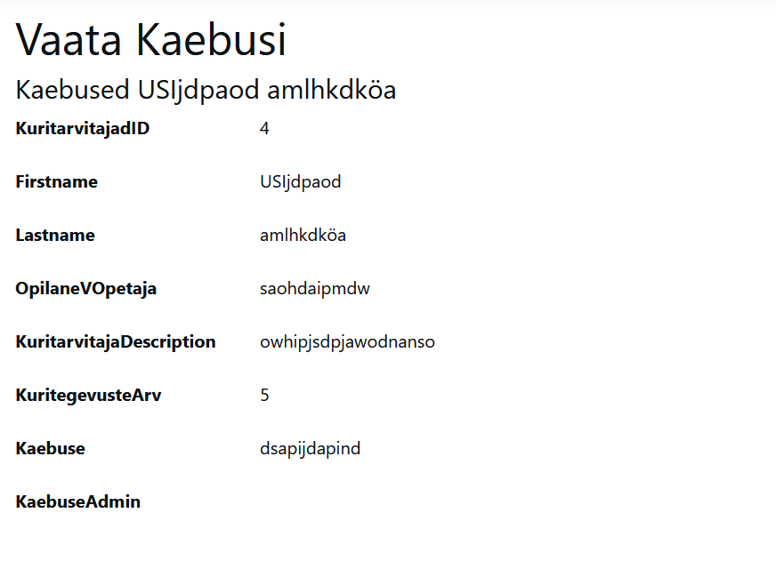 Siis tuleb meil Details vaate millega saab vaatata juba sisestadud andmeid aga lähedamalt ja rohkem organiseeritult: